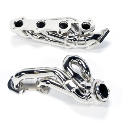 These BBK CNC Series headers for the Ford Mustang 4.6 liter GT are available with our optional high-temp show quality Silver polished ceramic coating or chrome finish.