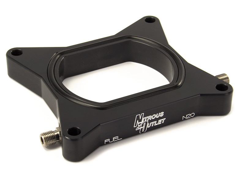 Wet Nitrous Plate. This system includes a billet aluminum plate to fit the stock 96-04 Mustang GT intake and is capable of flowing up to 400 HP of nitrous. Each billet plate has a black anodized finish with CNC engraved logo and fuel/nitrous labels.