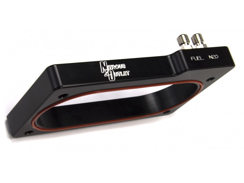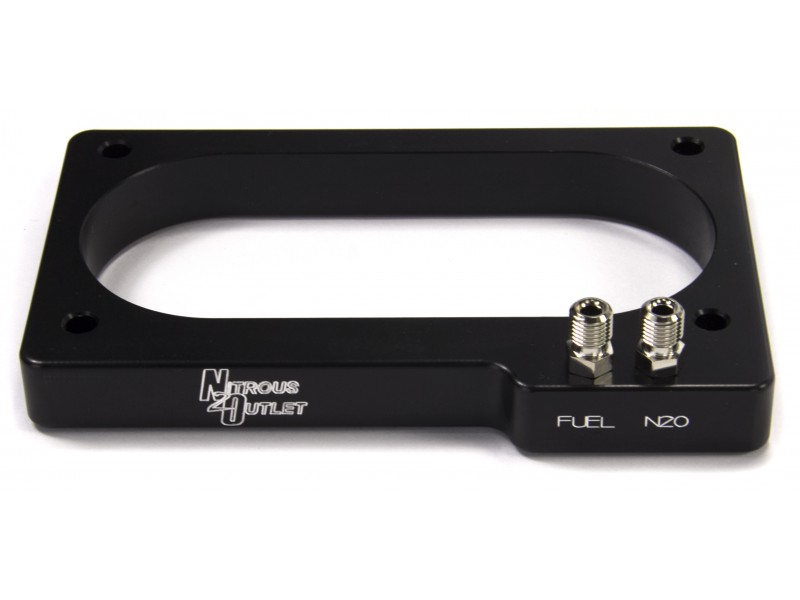 Wet Nitrous Plate. This system includes a billet aluminum plate to fit stock 2007-14 GT500 and Ford Racing Cobra Jet intake manifold and is capable of flowing up to 400 HP of nitrous. Each billet plate has a black anodized finish with laser etched logo and fuel/nitrous labels.