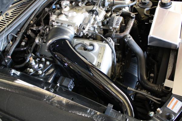 MAF and filter relocated into fender well for a cooler intake charge and can support 550 RWHP